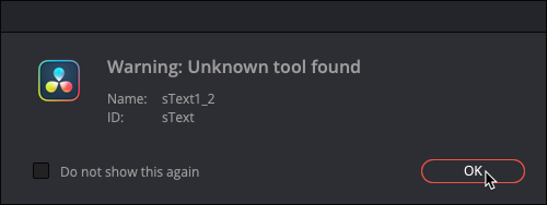 If you are getting an error message telling you "Warning; Unknow Tool Found" when you are dragging your effect to the timeline this means that the effect is using a node that doesn’t exist in your Davinci Resolve.